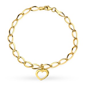 Efektowna złota bransoletka z dużych ogniw z zawieszką w kształcie serca. Przyciąga wzrok swoim blaskiem i stanowi mocny akcent każdej stylizacji.