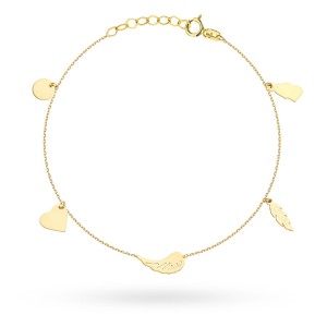Elegancka bransoletka - celebrytka z zawieszkami. Zachwyca swym dyskretnym urokiem i doda blasku każdej stylizacji.