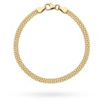 Bransoletka wykonana z złota o próbie 585 jest eleganckim dodatkiem, który łączy w sobie klasykę oraz nowoczesność. Bransoletka ma splot Bismarck, który jest znany ze swojej solidności oraz skomplikowanej struktury. Splot Bismarck składa się z gęsto splecionych ogniw, które są połączone w taki sposób, że tworzą masywną i wytrzymałą konstrukcję. Ogniwa te są owalne i przeplatają się w dwóch lub trzech rzędach, co nadaje bransoletce wyjątkowy wygląd oraz sprawia, że jest ona odporna na rozciąganie i deformacje. Bransoletka z takim splotem ma pełen, luksusowy wygląd. Jej powierzchnia jest zazwyczaj starannie wypolerowana, co nadaje jej piękny połysk i podkreśla bogaty kolor złota. Dzięki masywności i strukturze splotu, bransoletka świetnie prezentuje się zarówno jako samodzielny element biżuterii, jak i w połączeniu z innymi dodatkami. Z uwagi na swoją elegancję, jest idealnym wyborem na specjalne okazje, ale również doskonale sprawdzi się jako codzienny akcent podkreślający styl noszącej ją osoby. Jest to biżuteria, która przyciąga uwagę, będąc jednocześnie wytrzymałą i odporną na uszkodzenia. To idealny wybór dla osób ceniących sobie elegancję, jakość i trwałość. Dodatkowo, jej klasyczny design sprawia, że jest to inwestycja na lata, która nigdy nie wychodzi z mody.