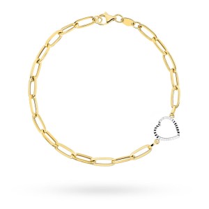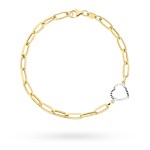 Bransoletka złota długie ogniwa i diamentowane serce w dwóch kolorach złota