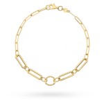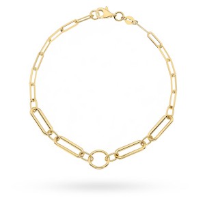 Bransoletka wykonana ze złota próby 585 to elegancka propozycja o nowoczesnym splocie z długich ogniw, uzupełniona złotym kółeczkiem w centralnej części. Minimalistyczna forma i szlachetny blask złota nadają biżuterii ponadczasowego charakteru. Bransoletka doskonale prezentuje się zarówno solo, jak i w połączeniu z innymi dodatkami. To stylowy i uniwersalny akcent, który podkreśla indywidualność i wyrafinowany gust noszącej ją osoby.