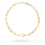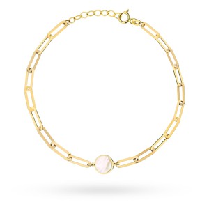 Bransoletka złota długie ogniwa i kółko z masą perłową