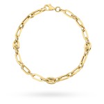 Bransoletka wykonana ze złota próby 585 zachwyca eleganckim połączeniem długich, smukłych ogniw z ozdobnymi elementami, które dodają jej wyjątkowego charakteru. Precyzyjnie wykonane detale i szlachetny blask złota sprawiają, że biżuteria prezentuje się stylowo, nowocześnie i z klasą. To ponadczasowy dodatek, który pięknie podkreśli nadgarstek i sprawdzi się zarówno w codziennych stylizacjach, jak i przy wyjątkowych okazjach.