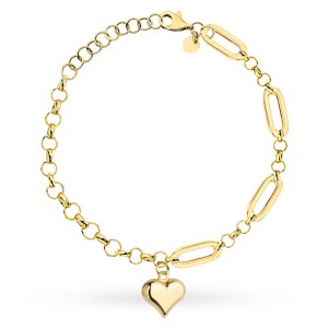 Bransoletka złota długie ogniwa, kółka i serce