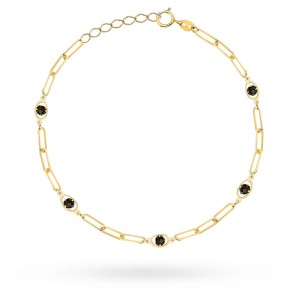 Bransoletka złota długie ogniwa, owale i czarne kamienie