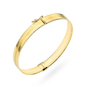 Bransoletka złota sztywna satynowa zdobiona diamentowanymi brzegami