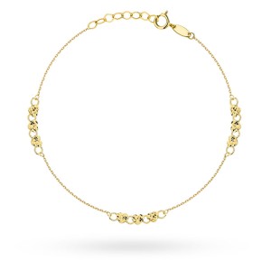 Subtelna złota bransoletka z serduszkami diamentowanymi. Ten model zachwyca swoim dyskretnym urokiem i blaskiem. Doskonały wybór dla osób lubiących delikatną, minimalistyczną złotą biżuterię.