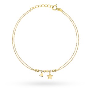 Bransoletka złota z gładkimi kulkami, sercem i gwiazdką na podwójnym łańcuszku