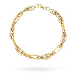 Stylowa bransoletka wykonana z żółtego złota próby 585, należąca do prestiżowej kolekcji GRANDE. Jej elegancką formę podkreślają lśniące cyrkonie, które pięknie odbijają światło i dodają biżuterii wyjątkowego uroku. To propozycja dla kobiet ceniących nowoczesny design połączony z klasyką złota. Doskonała zarówno do codziennych stylizacji, jak i na wyjątkowe okazje – będzie wyrazistym i ponadczasowym akcentem każdej kreacji.