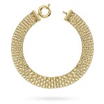 Efektowna i elegancka bransoletka wykonana ze złota próby 585 zachwyca szeroką formą oraz bogato zdobioną, diamentowaną strukturą, która tworzy niezwykłą grę światła. Gęsto spleciona powierzchnia nadaje biżuterii luksusowego charakteru i sprawia, że bransoletka przyciąga wzrok wyrazistym blaskiem. Starannie wykonany splot zapewnia elastyczność i komfort noszenia, a jednocześnie podkreśla solidność i wysoką jakość jubilerskiego rzemiosła. Całość została zwieńczona eleganckim zapięciem typu federing, które gwarantuje bezpieczeństwo i wygodę użytkowania. Bransoletka doskonale sprawdzi się jako samodzielna, wyrazista ozdoba, idealna na wyjątkowe okazje, ale również jako luksusowy akcent do eleganckich stylizacji. To doskonały pomysł na prestiżowy prezent – ponadczasowy, efektowny i pełen klasy, dla osób ceniących bogate wzornictwo i szlachetny blask złota.