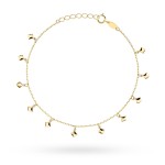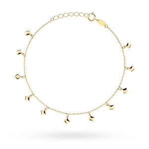 Delikatna i pełna uroku bransoletka wykonana ze złota próby 585 zachwyca lekką, łańcuszkową formą oraz subtelnymi, dekoracyjnymi elementami. Smukły łańcuszek został ozdobiony drobnymi, geometrycznymi zawieszkami, które swobodnie poruszają się przy każdym ruchu, nadając biżuterii lekkości i dziewczęcego wdzięku. Polerowana powierzchnia złota pięknie odbija światło, podkreślając elegancki, a jednocześnie minimalistyczny charakter bransoletki. Regulowane zapięcie umożliwia idealne dopasowanie do nadgarstka, zapewniając komfort noszenia. Bransoletka doskonale sprawdzi się jako subtelny dodatek do codziennych stylizacji, jak i delikatna biżuteria na wyjątkowe okazje. To także doskonały pomysł na prezent – uniwersalny, ponadczasowy i pełen elegancji, idealny na urodziny, rocznicę lub inne ważne chwile.