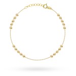 Bransoletka złota złożona z gładkich kuleczek to ponadczasowy i subtelny wybór, który świetnie komponuje się z wieloma stylizacjami. Tego typu biżuteria jest elegancka, a jednocześnie bardzo uniwersalna. Gładkie kuleczki mogą być równomiernie rozmieszczone na całej długości bransoletki lub mieć różne wielkości, co doda jej ciekawego efektu wizualnego. Taka bransoletka może być noszona samodzielnie, ale także stanowić doskonałą bazę do zestawienia z innymi, bardziej wyrazistymi elementami biżuterii.