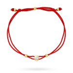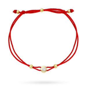 Bransoletka złote kółko z centralnym kamykiem na czerwonym sznurku
