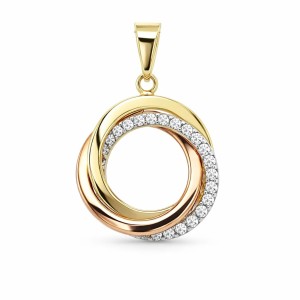 Elegancka złota zawieszka w kolorze żółtego i różowego złota z dodatkiem cyrkonii. Ten klasyczny, ponadczasowy model będzie doskonałym dodatkiem na każdą okazję.