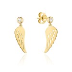 Pełne uroku złote kolczyki w kształcie skrzydeł ozdobione błyszczącą cyrkonią. Połączenie szlachetnego złota i połyskujących kamieni tworzy idealną całość, która będzie doskonałym uzupełnieniem każdej stylizacji.
