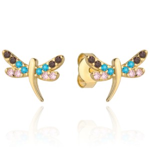 Kolczyki złota ważka wysadzana kolorowymi cyrkoniami 1.06g