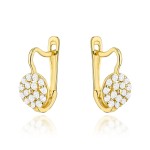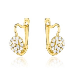 Eleganckie złote kolczyki z angielskim zapięciem. Białe cyrkonie w połączeniu ze złotem tworzą pełną uroku, klasyczną całość, która świetnie dopełni każdą stylizację.