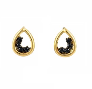 Kolczyki złote łezki na sztyft czarne kamienie