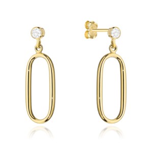 Kolczyki złote z cyrkonią i wiszącym owalem
