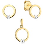 Komplet kolczyki + zawieszka złote kółeczko z cyrkonią na dole