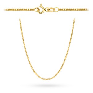 Stylowy łańcuszek wykonany z wysokiej jakości złota próby 375, wyróżniający się eleganckim splotem typu lisi ogon. Precyzyjnie połączone ogniwa tworzą zwartą i gładką strukturę, która pięknie odbija światło, nadając biżuterii luksusowego charakteru. Długość 42 cm sprawia, że łańcuszek układa się blisko szyi, subtelnie podkreślając dekolt. Idealnie sprawdzi się zarówno jako samodzielna ozdoba, jak i w połączeniu z zawieszką. Wyposażony w solidne i wygodne zapięcie typu federing, które zapewnia bezpieczeństwo oraz komfort noszenia.