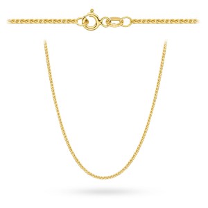 Złoty łańcuszek o próbie 585 długości 50 cm. Splot "lisi ogon" przepięknie się układa i współgra z każdym nawet najbardziej delikatnym ruchem. Cudownie odbija światło. Splot ten składa się z kilku pasm ogniwek gęsto splecionych na kształt warkocza, który ze względu na swoją okazałość kojarzy się z puchatą lisią kitą. Łańcuszki ze splotem "lisi ogon" z powodzeniem mogą nosić kobiety jak i mężczyżni.