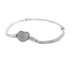 Bransoletka modułowa wykonana ze srebra próby 925 to elegancki i personalizowany dodatek, idealny dla osób ceniących zarówno klasykę, jak i nowoczesne rozwiązania w biżuterii. Jej wyjątkowość polega na możliwości dodawania i wymiany różnych modułów, co pozwala na tworzenie unikalnych kompozycji zgodnie z indywidualnym gustem i okazją. Centralnym elementem tej bransoletki jest zapięcie w kształcie serca, które nie tylko pełni funkcję praktyczną, ale także estetyczną. Serce to jest wysadzane cyrkoniami, co dodaje mu blasku i sprawia, że bransoletka staje się wyjątkowym dodatkiem przyciągającym wzrok. Srebro próby 925, z którego wykonana jest bransoletka, charakteryzuje się wysoką jakością i trwałością. Bransoletka ta to doskonały wybór na prezent, który można dostosować do gustu obdarowanej osoby poprzez dodawanie wybranych charmsów i zawieszek. Dzięki temu staje się ona nie tylko ozdobą, ale i osobistą pamiątką.
