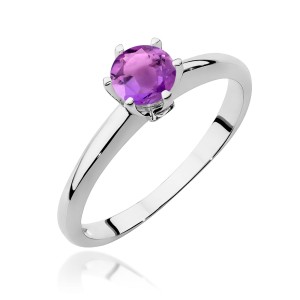 Pierścionek klasyczny z Ametystem 0,50ct białe złoto