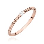 Pierścionek szyna z kuleczek Diament 0,02ct różowe złoto