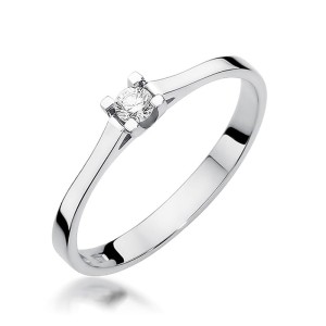 Pierścionek z białego złota z białym brylantem