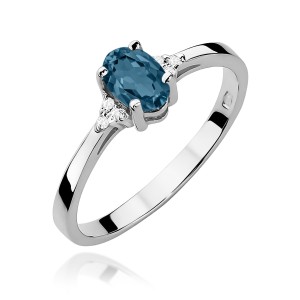 Pierścionek z białego złota z owalnym Topazem London Blue i brylantami