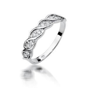 Pierścionek z brylantami przeplatany wzór z białego złota