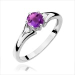 Pierścionek z okrągłym Ametysemt 0,50ct oraz brylantami z białego złota
