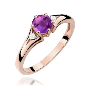 Pierścionek z okrągłym Ametystem 0,50ct oraz brylatami różowe złoto