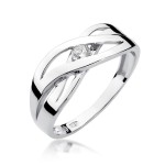 Pierścionek z plecioną szyną Diament 0,10ct białe złoto