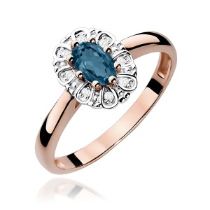 Pierścionek z różowego złota z Topazem w ozdobnej oprawie z brylantami