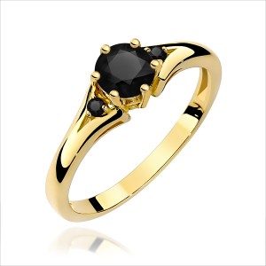 Pierścionek ze złota z centralnym czarnym brylantem oraz dwoma czarnymi brylantami po bokach to elegancki i nowoczesny wybór. Taki pierścionek może być wspaniałym dodatkiem na specjalne okazje, jak również codziennym elementem biżuterii. Duży czarny brylant w centrum przyciąga uwagę i nadaje pierścionkowi wyrafinowany wygląd. Dwa mniejsze brylanty po bokach uzupełniają centralny kamień, dodając mu symetrii i blasku.