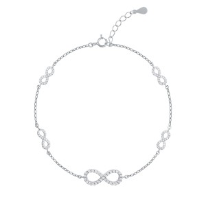 Srebrna bransoletka z nieskończonościami wysadzanymi cyrkoniami to wyjątkowy i elegancki dodatek do każdej biżuterii. Wykonana z najwyższej jakości srebra, bransoletka ta emanuje subtelnością i klasyką.