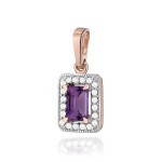 Zawieszka z Ametystem i Brylantami prostokątna z różowego złota