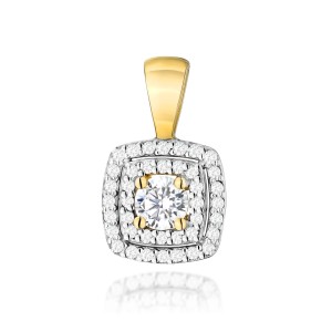 Zawieszka wykonana ze złota próby 585 to wyjątkowy i elegancki element biżuterii, który łączy szlachetność złota z niezwykłą urodą diamentów. W centralnej części zawieszki umieszczony jest diament laboratoryjny o masie 0,30 ct, charakteryzujący się doskonałą czystością (klasa VS2) oraz bezbarwną barwą (F), co zapewnia mu wyjątkowy blask. Diament ten jest otoczony oprawionymi diamentami w dwóch rzędach, które tworzą subtelną ramkę dookoła centralnego kamienia. Te dodatkowe diamenty mają kwadratowy kształt, co nadaje zawieszce nowoczesny i geometryczny charakter. Całość tworzy niezwykle elegancką biżuterię, która jest zarówno klasyczna, jak i nowoczesna. Zawieszka może stanowić doskonały wybór na specjalne okazje, takie jak rocznice, a jej design sprawia, że doskonale pasuje zarówno do codziennego, jak i wieczorowego stroju.