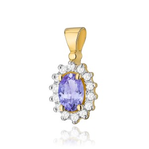 Zawieszka w owalnym kształcie, wykonana ze złota w próbie 0,585. W centrum zawieszki umieszczony jest Tanzanit, o głębokim niebiesko-fioletowym odcieniu. W górnej cześci zawieszki umieszczone są Brylanty, które dodają mu blasku i podkreślają jego piękno. Zawieszka jest subtelna ale zarazem efektowna.