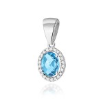 Zawieszka z Topazem i brylantami to elegancki i subtelny dodatek. Głównym elementem jest Topaz w niebieskim kolorze. Otoczony brylantami tworzy efektowny efektowny kontrast oraz dodają mu blasku.