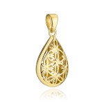 Elegancka zawieszka wykonana z złota próby 585 zachwyca smukłą formą łezki, symbolizującą delikatność, harmonię i kobiecą subtelność. Ażurowe wnętrze zostało ozdobione misternym, geometryczno-roślinnym wzorem, który nadaje biżuterii lekkości i wyjątkowego charakteru. Polerowana powierzchnia złota pięknie odbija światło, podkreślając precyzję wykonania oraz bogactwo detali. Otwarta konstrukcja sprawia, że zawieszka prezentuje się niezwykle lekko i elegancko, doskonale komponując się z cienkim łańcuszkiem. Zawieszka idealnie sprawdzi się jako stylowy dodatek do codziennych stylizacji, jak i elegancka biżuteria na specjalne okazje. To również doskonały pomysł na prezent dla kobiet ceniących oryginalne wzornictwo, klasykę i wysoką jakość jubilerskiego wykonania.