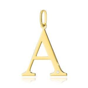 Złota zawieszka litera A z brylantem