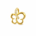 Delikatna złota zawieszka w kształcie motyla, symbolizująca lekkość, wolność i przemianę. Ażurowe, harmonijnie wyprofilowane skrzydła nadają biżuterii subtelny i nowoczesny charakter, a rząd lśniących cyrkonii osadzonych w centralnej części dodaje całości eleganckiego blasku. Gładka, polerowana powierzchnia pięknie odbija światło, podkreślając szlachetność złota i precyzję wykonania. Zawieszka doskonale komponuje się z cienkim łańcuszkiem, sprawdzając się zarówno w codziennych stylizacjach, jak i jako wyjątkowy akcent na specjalne okazje. Idealny pomysł na prezent dla osoby ceniącej delikatną, kobiecą biżuterię o ponadczasowym znaczeniu.