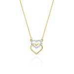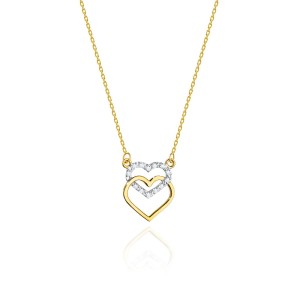Naszyjnik wykonany ze złota próby 585 to elegancka biżuteria, która łączy subtelną prostotę z romantycznym designem. Składa się z łańcuszka o splocie ankier, który jest trwały i delikatny oraz zawieszki z dwóch serc. W jednym sercu jest wplecione drugie, większe serce. Jedno z serc wysadzane jest brylantami, które dodają całości blasku i luksusowego charakteru. Wykonany z wysokiej jakości materiałów zapewnia nie tylko piękny wygląd, ale i trwałość. To wyjątkowy naszyjnik, który może być romantycznym prezentem lub eleganckim akcentem stylizacji.