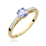 Złoty pierścionek z Tanzanitem i brylantami na szynie