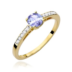 Pierścionek wykonany jest z żółtego złota o próbie 585, co nadaje mu ciepły, luksusowy blask i trwałość. Centralnym elementem pierścionka jest pięknie oszlifowany, naturalny tanzanit o masie 0,50 karata. Kamień ten charakteryzuje się intensywną, głęboką barwą, przechodzącą od niebieskiej po fioletową, co zapewnia wyjątkowy urok i elegancję. Dodatkowo na szynie pierścionka, obsadzone są brylanty o masie 0,005 ct, które subtelnie podkreślają centralny kamień, dodając blasku. Połączenie tanzanitu i brylantów tworzy harmonijny, wyrafinowany wygląd, idealny na specjalne okazje jak np. zaręczyny. Ponadczasowy wzór będzie cieszył oko bez końca.