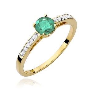 Pierścionek wykonany z wysokiej jakości złota o próbie 585 to elegancki i klasyczny wyróbr jubilerski. Centralnym elementem jest intensywny zielony szmaragd o masie 0,50 karata, który nadaje całości wyjątkowy, luksusowy wygląd. Szmaragd osadzony jest stabilnie i estetycznie, co podkreśla jego barwę i elegancki charakter. Dodatkowo na szynie pierścionka obsadzone są brylanty o całkowitej masie 0,005 karata, które subtelnie podkreślają kamień centralny oraz dodają blasku.